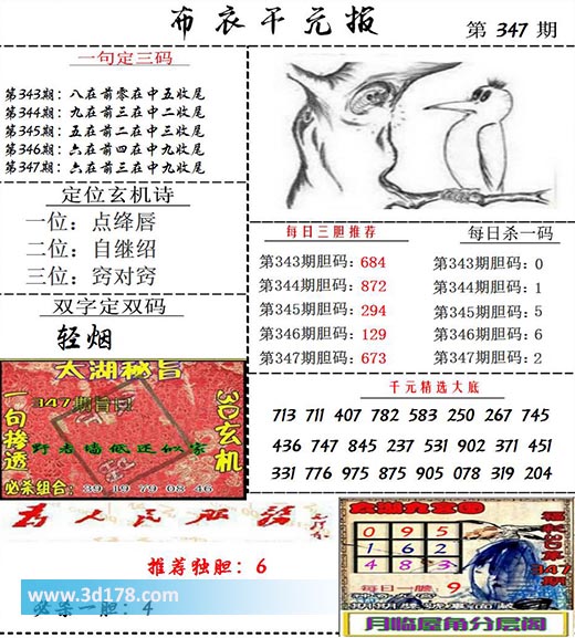 福彩3d布衣图库布衣千元报第2021347期定位玄机诗: