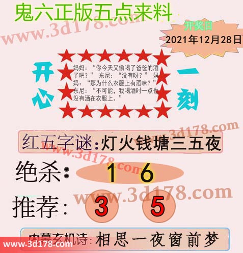 福彩3d第2021348期鬼六五点来料: