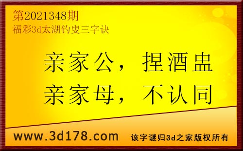 3d第21348期太湖字谜:亲家公,捏酒盅,亲家母,不认同