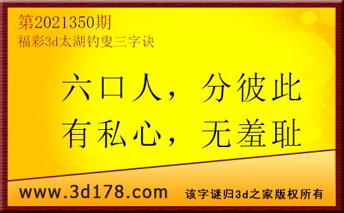 3d第21350期太湖字谜:六口人,分彼此,有私心,无羞耻