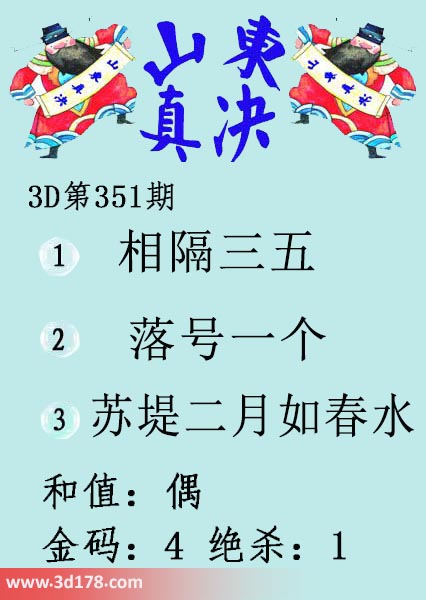 福彩3d第2021351期山东真诀图如下所示: