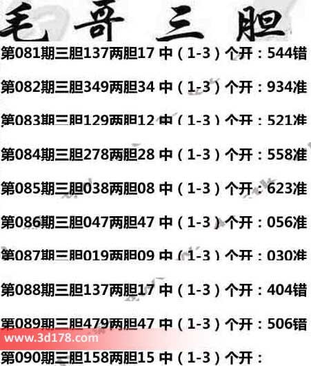 3d第2014090期毛哥三胆:
