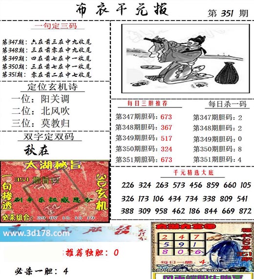 福彩3d第2021351期布衣千元报图详情分析如下: