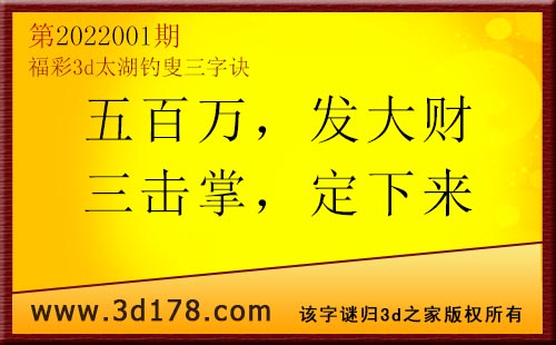 3d第22001期太湖字谜:五百万,发大财,三击掌,定下来