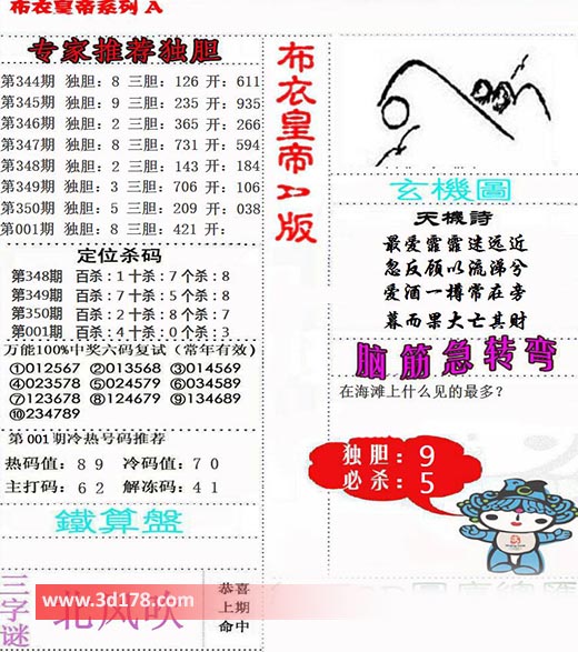 福彩3d第2022001期布衣皇帝A版布衣专家独家推荐: