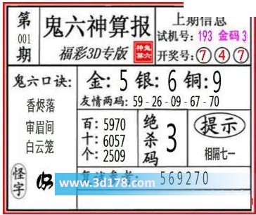 3d第22001期鬼六神算报为您推荐鬼六口诀: