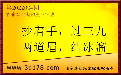 3d第22004期太湖字谜:抄着手,过三九,两道眉,结冰溜