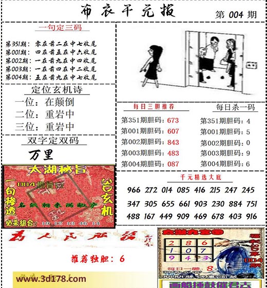 福彩3d布衣图库布衣千元报第2022004期定位玄机诗: