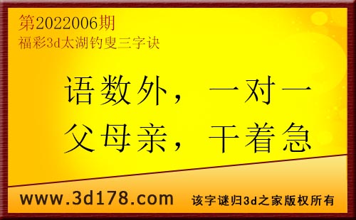 3d第22006期太湖字谜:语数外,一对一,父母亲,干着急
