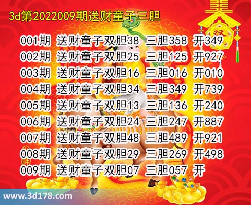 下面我们一起来回顾一下3d之家胆码图送财童子三胆近期推荐详情:
