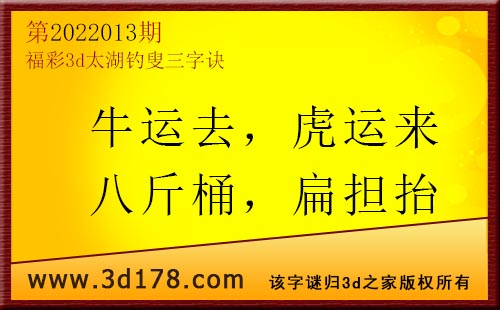 3d第22013期太湖字谜:牛运去,虎运来,八斤桶,扁担抬