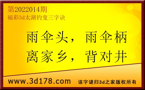 3d第22014期太湖字谜:雨伞头,雨伞柄,离家乡,背对井