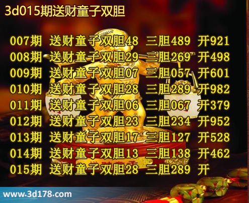 下面我们一起来回顾一下3d之家胆码图送财童子三胆近期推荐详情:
