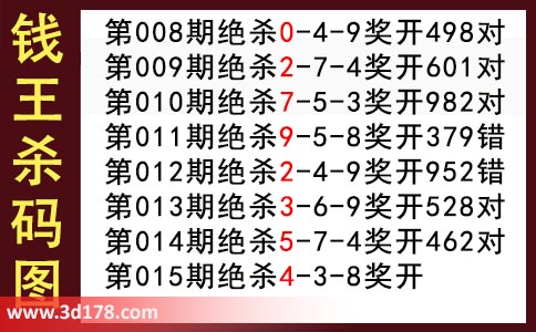 近期3d钱王杀码具体详情: