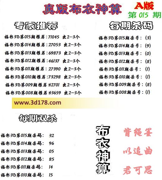 3d之家布衣图库之布衣神算图第2022015期详解: