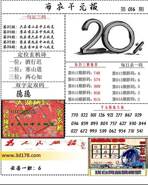 福彩3d布衣图库布衣千元报第2022016期定位玄机诗: