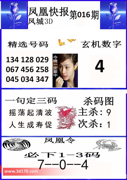 福彩3d凤凰快报图第22016期精选号码推荐: