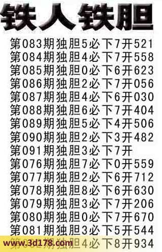 福彩3d之家第091期铁人铁胆: