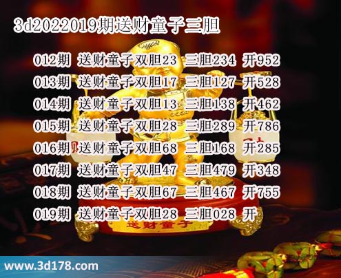 下面我们一起来回顾一下3d之家胆码图送财童子三胆近期推荐详情: