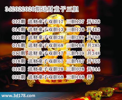 下面我们一起来回顾一下3d之家胆码图送财童子三胆近期推荐详情: