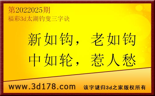 3d第22025期太湖字谜:新如钩,老如钩,中如轮,惹人愁