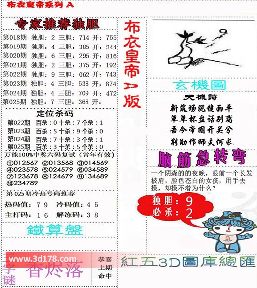 福彩3d第2022025期布衣皇帝A版布衣专家独家推荐: