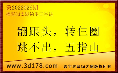 3d第22026期太湖字谜:翻跟头,转仨圈,跳不出,五指山