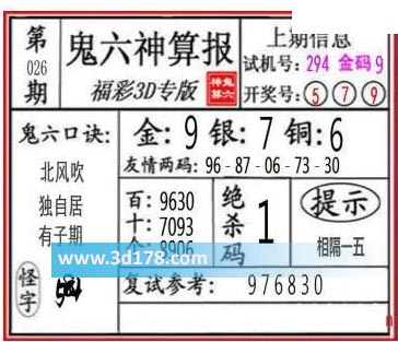 3d第22026期鬼六神算报为您推荐鬼六口诀: