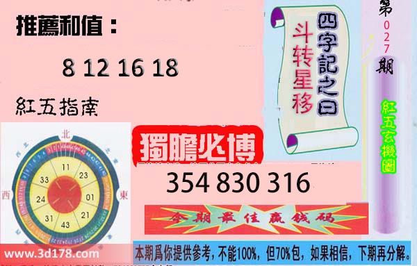 第22027期3d红五玄机图为您推荐: