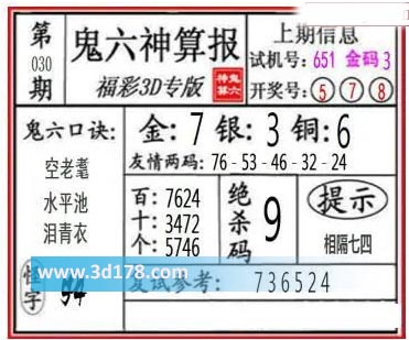 3d第22030期鬼六神算报为您推荐鬼六口诀: