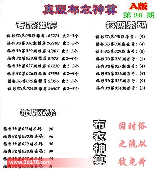 3d之家布衣图库之布衣神算图第2022031期详解:
