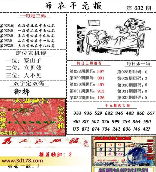 福彩3d布衣图库布衣千元报第2022032期定位玄机诗: