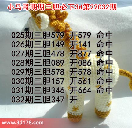 3d第22032期小马哥三胆预测如下: