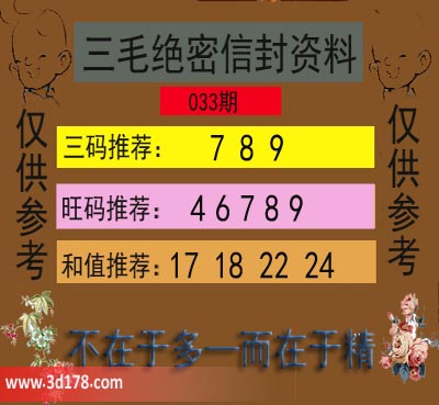 福彩3d第22033期三毛绝密信封资料图详解: