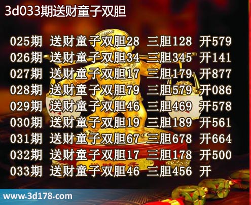 下面我们一起来回顾一下3d之家胆码图送财童子三胆近期推荐详情: