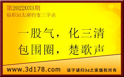 3d第22033期太湖字谜:一股气,化三清,包围圈,楚歌声