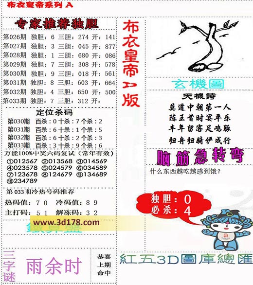 福彩3d第2022033期布衣皇帝A版布衣专家独家推荐: