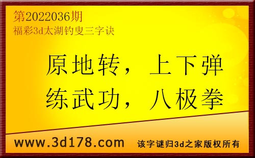 3d第22036期太湖字谜:原地转,上下弹,练武功,八极拳
