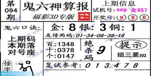 3d第2014094期鬼六神算报:
