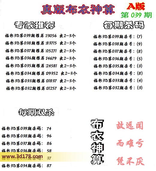 3d之家布衣图库之布衣神算图第2022039期详解: