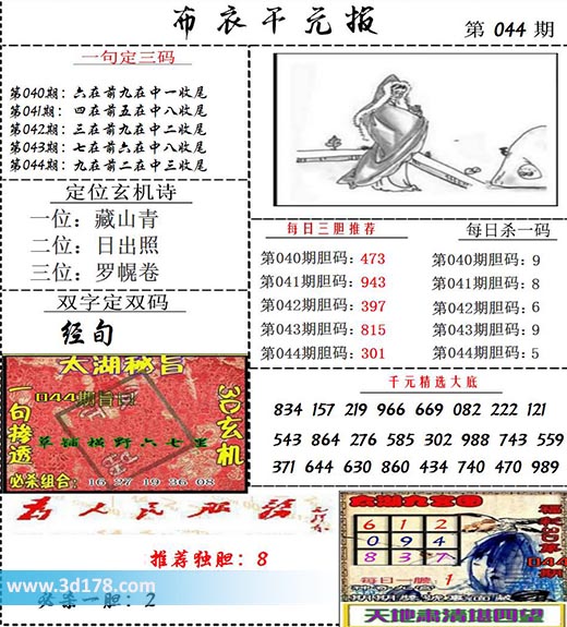 福彩3d第2022044期布衣千元报图详情分析如下: