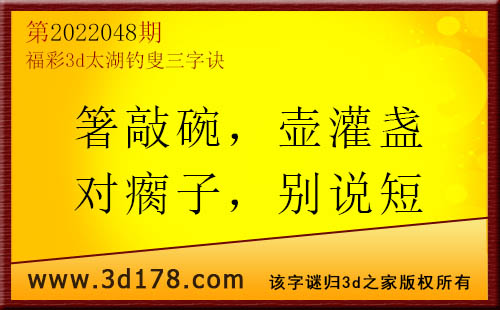 3d第2022048期太湖字谜:箸敲碗,壶灌盏,对瘸子,别说短