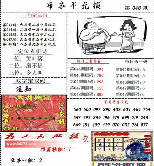 福彩3d第2022048期布衣千元报图详情分析如下: