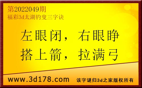 3d第22049期太湖字谜:左眼闭,右眼睁,搭上箭,拉满弓