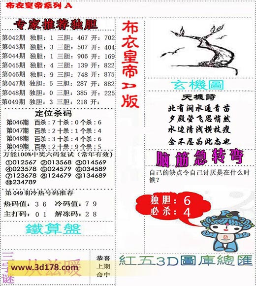 福彩3d第2022049期布衣皇帝A版布衣专家独家推荐: