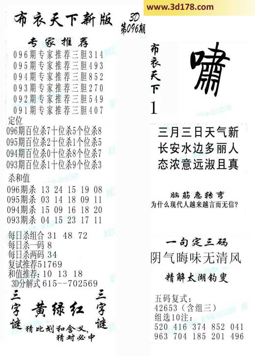 3d第2014096期布衣天下新版: