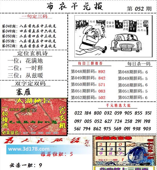 福彩3d布衣图库布衣千元报第2022052期定位玄机诗: