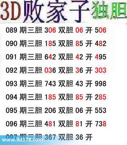 3d福彩3d之家第2014097期3d败家子独胆图: