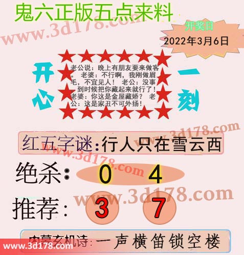 福彩3d第2022055期鬼六五点来料:
