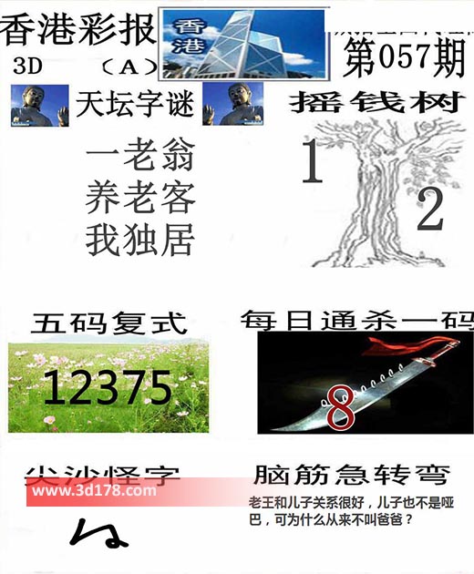3d香港彩报第22057期分析: